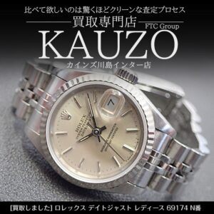 「ロレックス デイトジャスト 69174」は、1980~1990年代に製造されたレディースモデルで、ステンレススチールと18Kホワイトゴールドのコンビ仕様が特徴です。