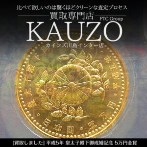 今回お持ち込みいただいた金貨は「皇太子殿下御成婚記念 5万円金貨」です。