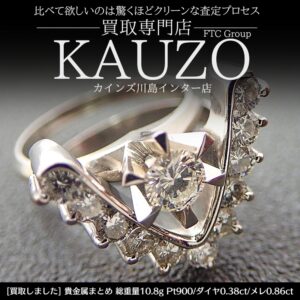 『 貴金属まとめ 総重量10.8g Pt900/ダイヤ0.38ct/メレ0.86ct 』を買取させていただきました。
