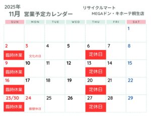 11月の営業予定について