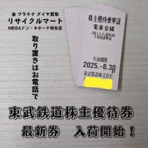 最新 東武鉄道株主優待券(2025年6月30日期限)の買取額