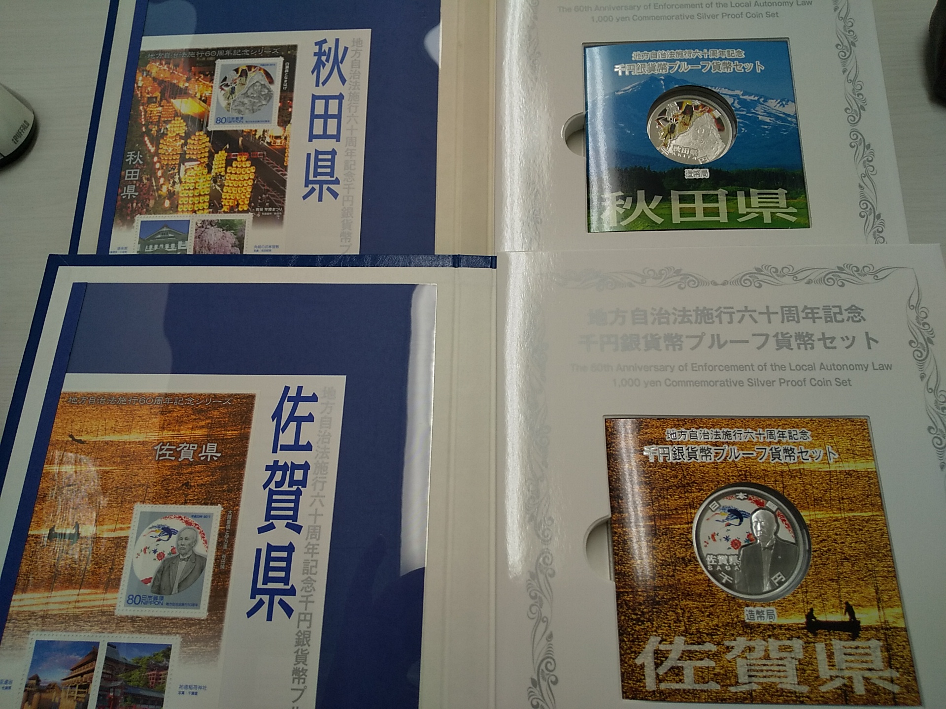 地方自治法記念千円銀貨貨幣セット、秋田県と佐賀県のふたつを買い取りました!
