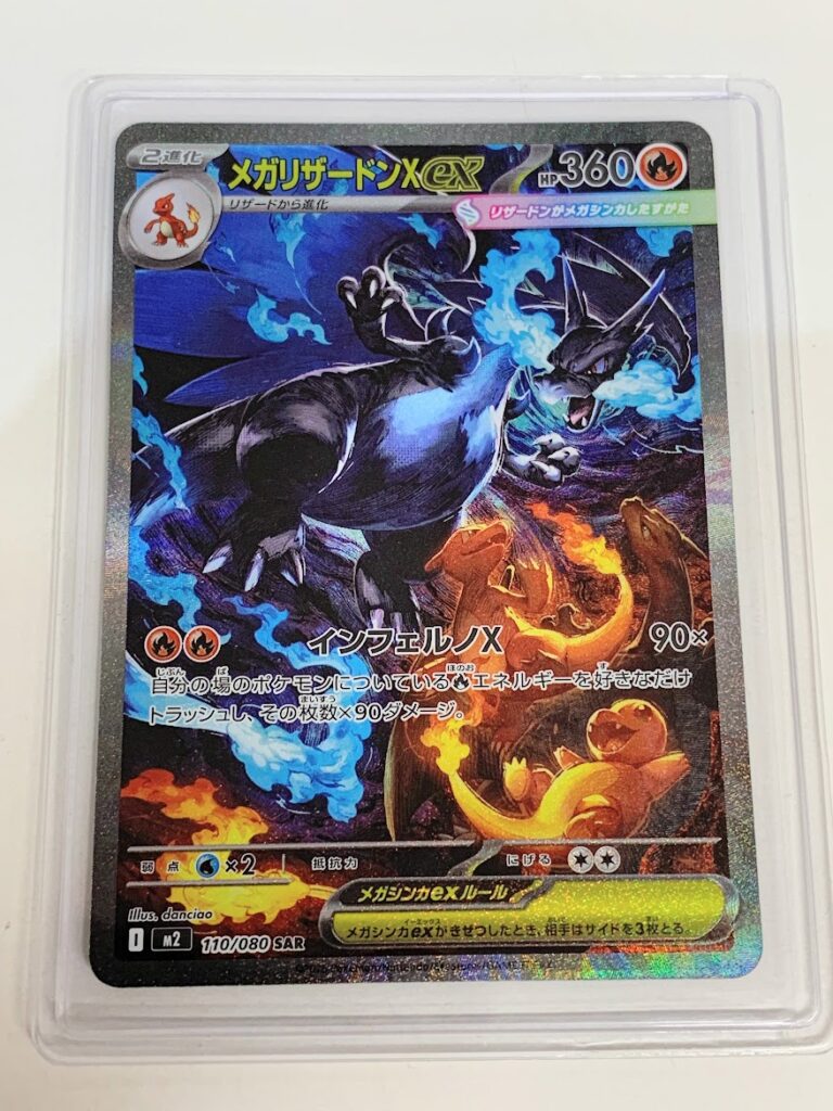 この記事では当店にお持ち頂いた実際の商品を例に メガリザードンXex I M2 110/080 SARのお買取金額を鑑定士が解説致します。