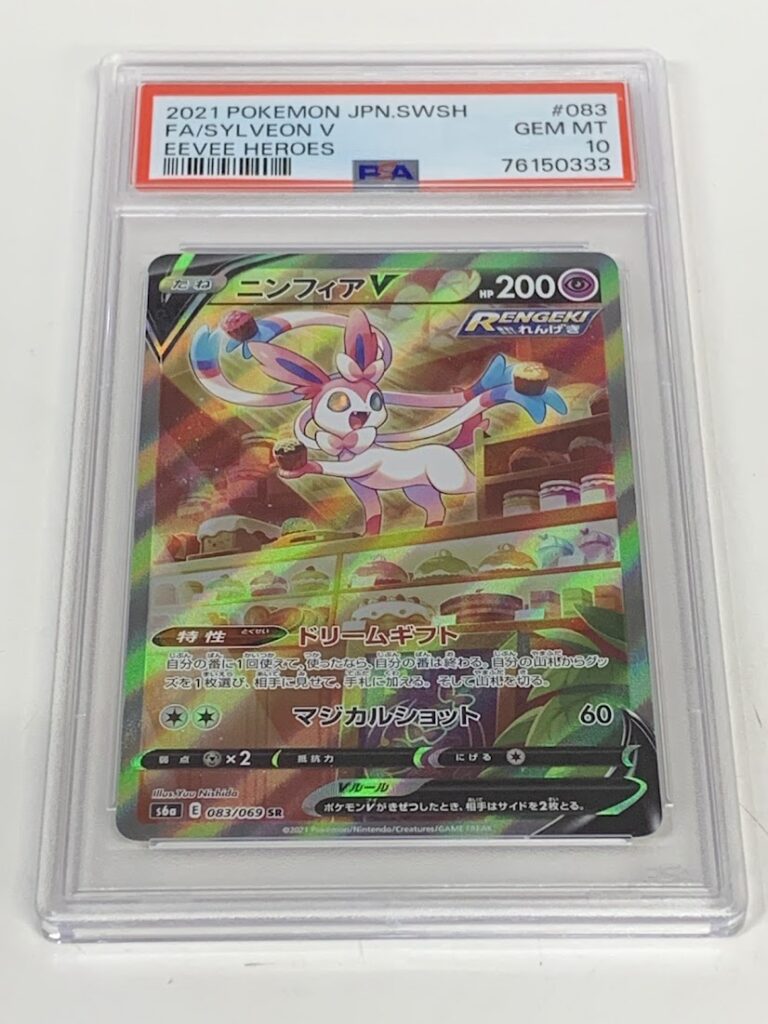 お持込み頂いた「PSA10鑑定済みポケモンカード ニンフィアV s6a E 083/069」をご紹介させて頂きました。