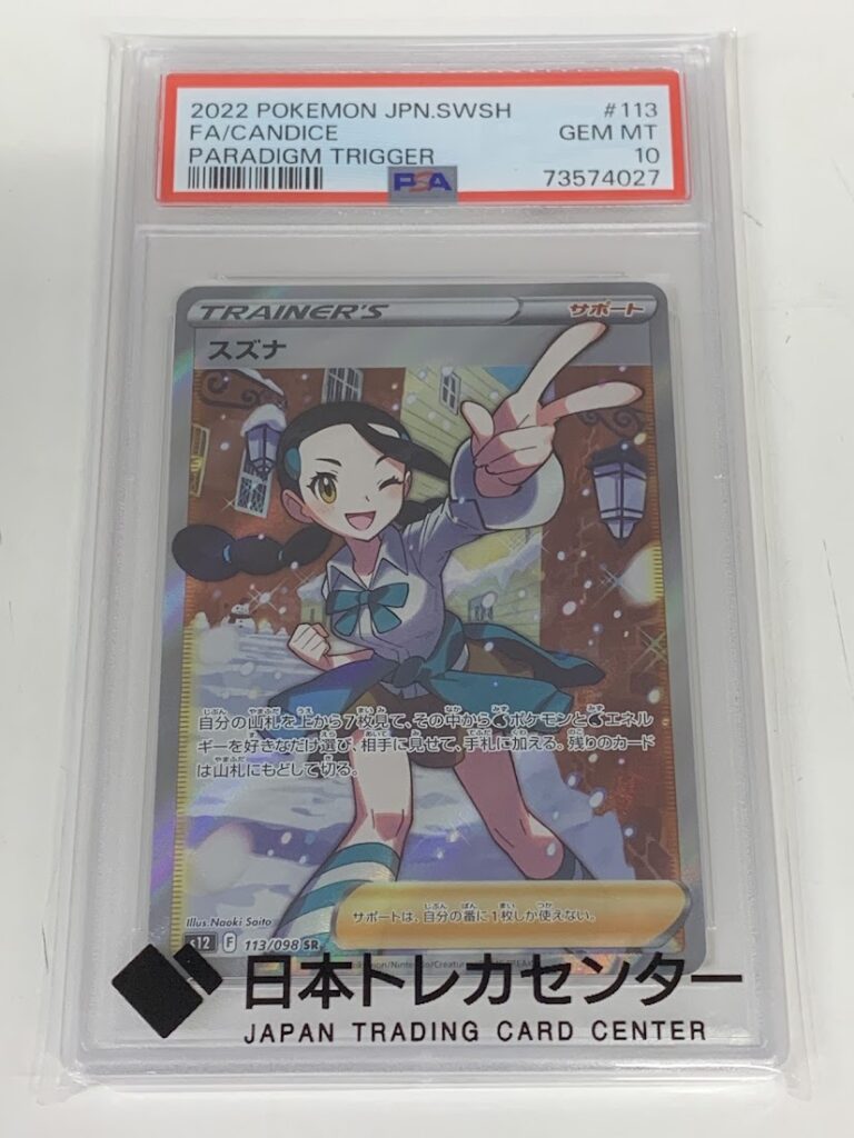 この記事では当店にお持ち頂いた実際の商品を例にPSA10鑑定済みポケモンカード スズナ s12 F 113/098 SRのお買取金額を鑑定士が解説致します。