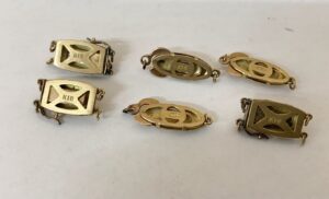 本日ご紹介するのは「K18 ネックレス留め具(6.35g)」です。K18の留め具(金具)6個をお持込みいただきました。留め具単体でも、地金としての価値はあります。