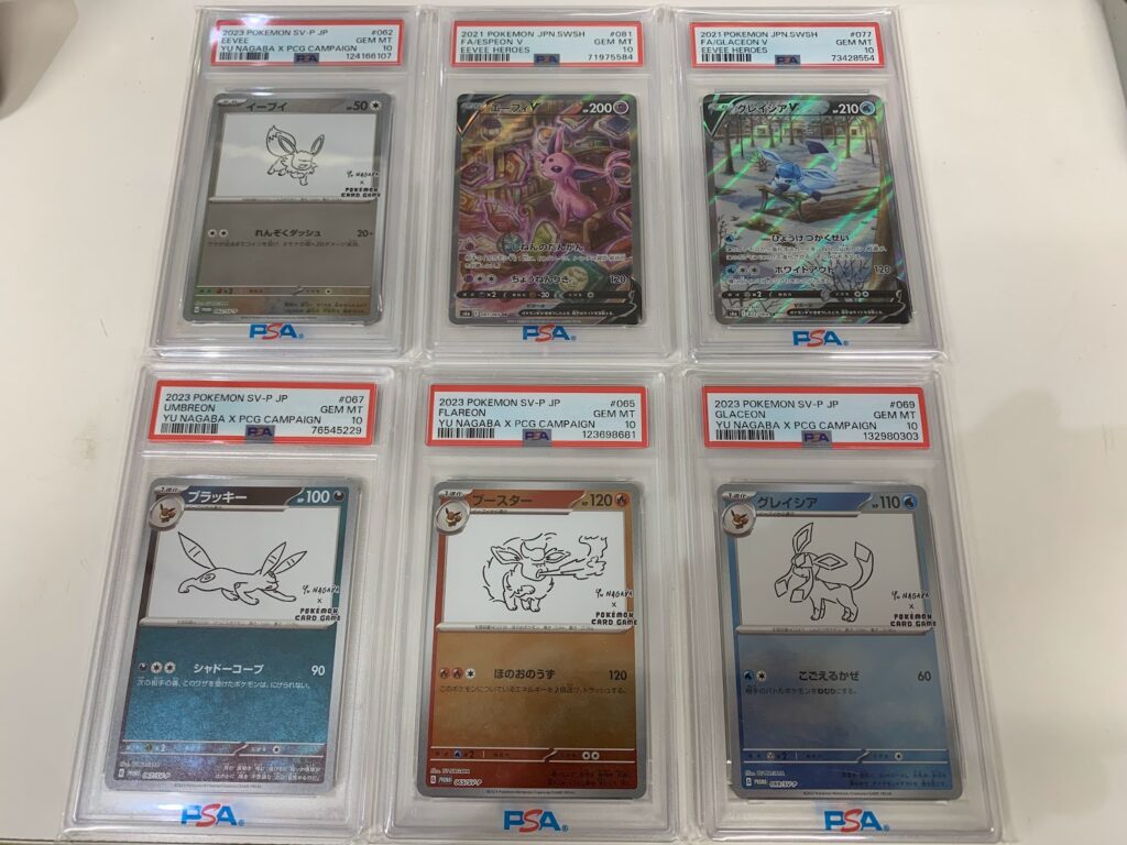 お持込み頂いた「PSA10鑑定済みポケモンカード イーブイシリーズ 6種類」をご紹介させて頂きました。