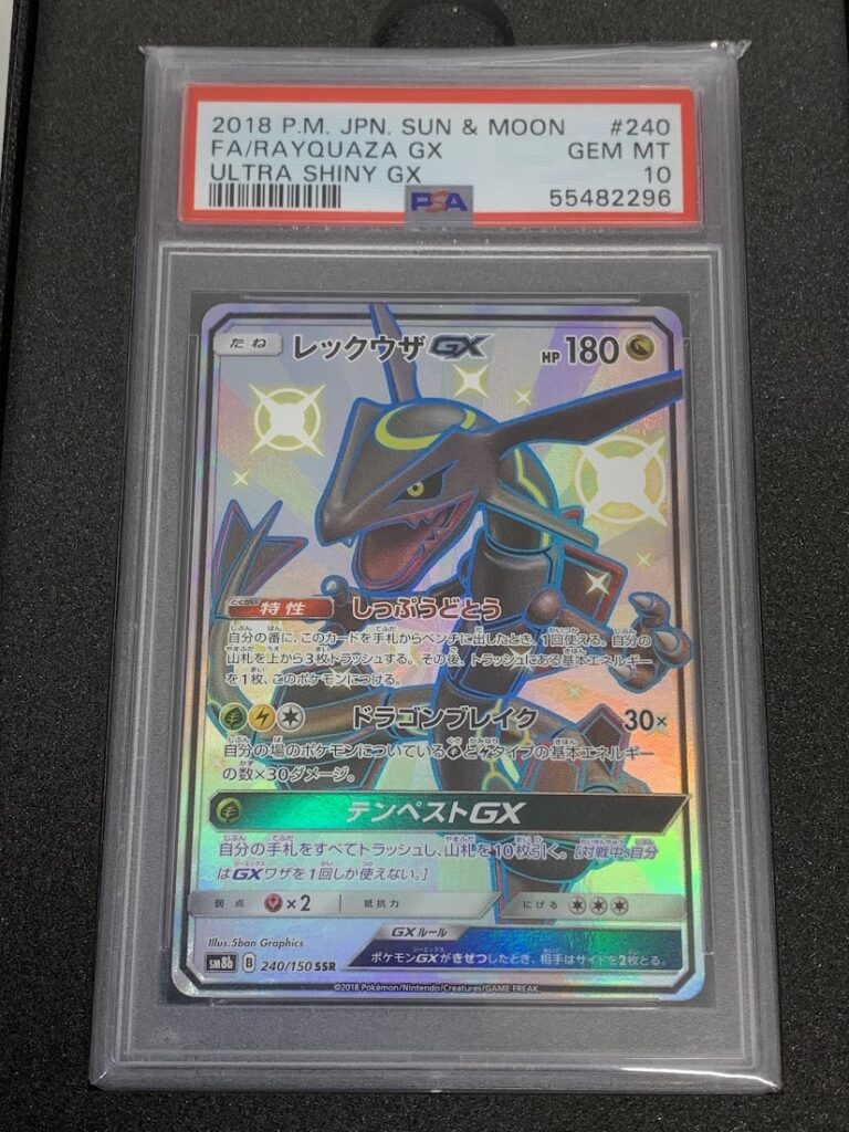 この記事では当店にお持ち頂いた実際の商品を例にPSA10鑑定済みポケモンカード レックウザGX B SM8b 240/150 SSRのお買取金額を鑑定士が解説致します。
