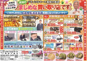 リサイクルマート高知介良店の最大の魅力は買取保証です。全てチラシ記載の買取価格でのお買取りさせていただきますので安心してご来店下さい。