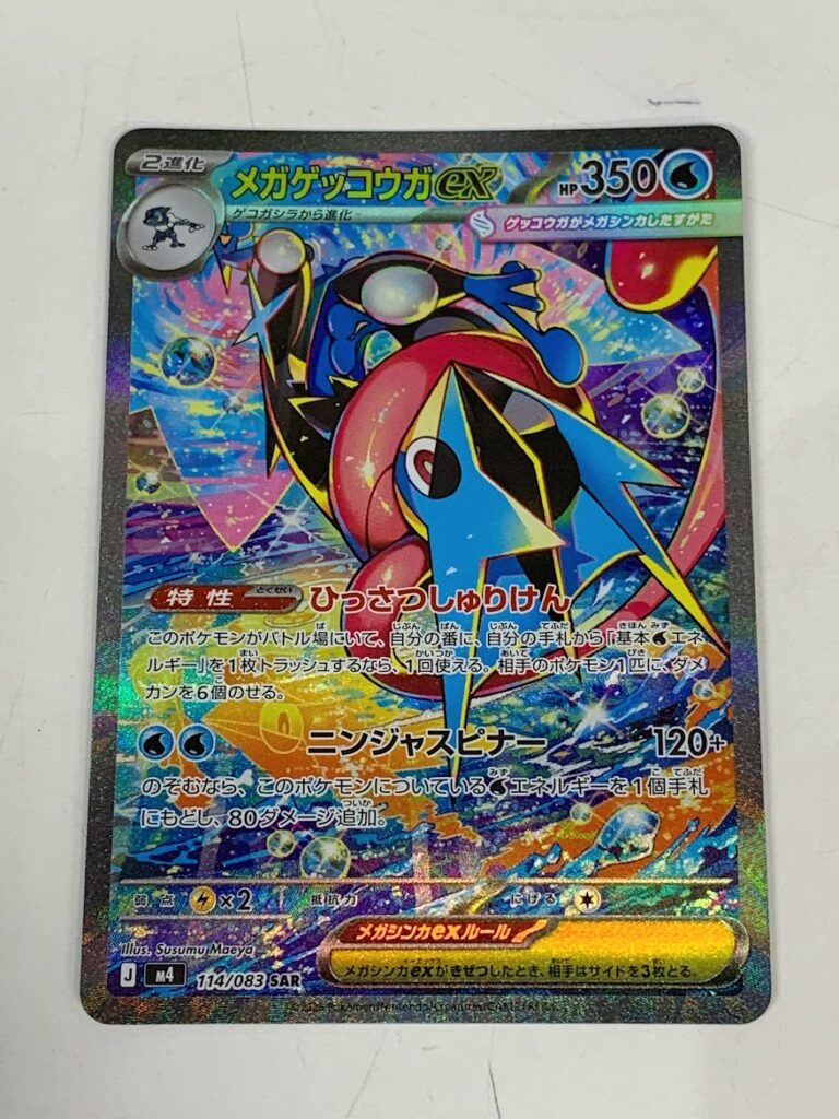 この記事では当店にお持ち頂いた実際の商品を例にポケモンカード メガゲッコウガex J M4 114/083 SARのお買取金額を鑑定士が解説致します。