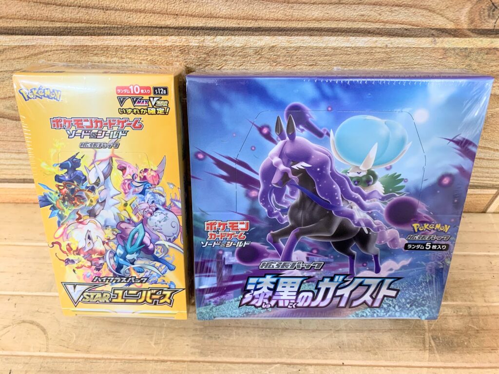 本日ご紹介するのは「ポケモンカードゲーム ソード&シールド ハイクラスパック VSTARユニバース BOX/拡張パック 漆黒のガイスト BOX」です。