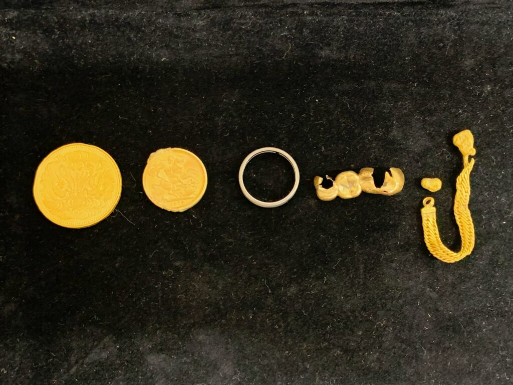 今回お持ち込みいただいたのは、記念金貨として人気の高い御在位10万円金貨をはじめ、金歯などを含む貴金属5点。素材としての価値はもちろん、コレクション性や希少性も光るラインナップでした✨