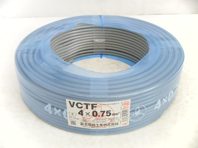 富士電線 VCTFケーブル 4×0.75mm 灰 100m 未使用品 買取させていただきました!!