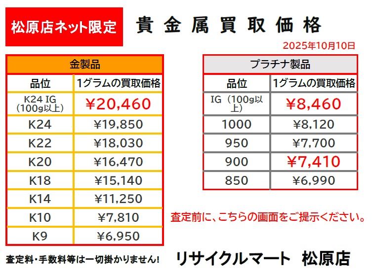 金、いつ、どこで売りますか?ズバリ!今、リサクルマート松原店ででしょっ!