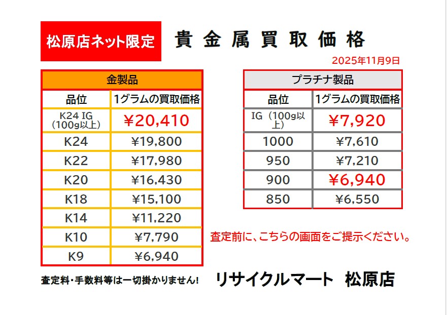 11月9日 金相場 高騰!リサイクルマート松原店金の買取ならリサイクマート松原店で!