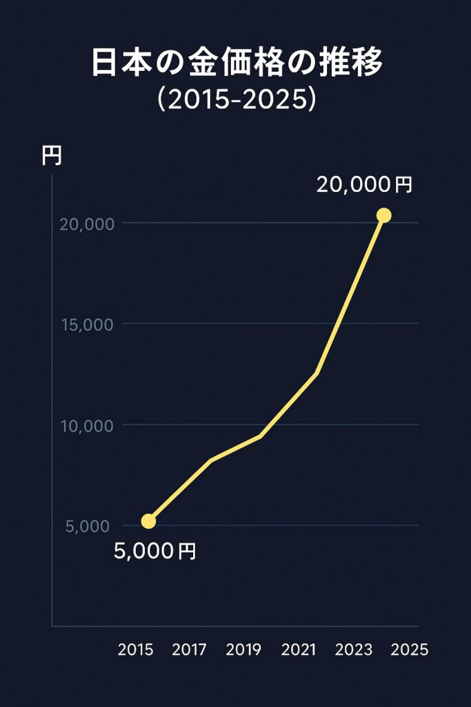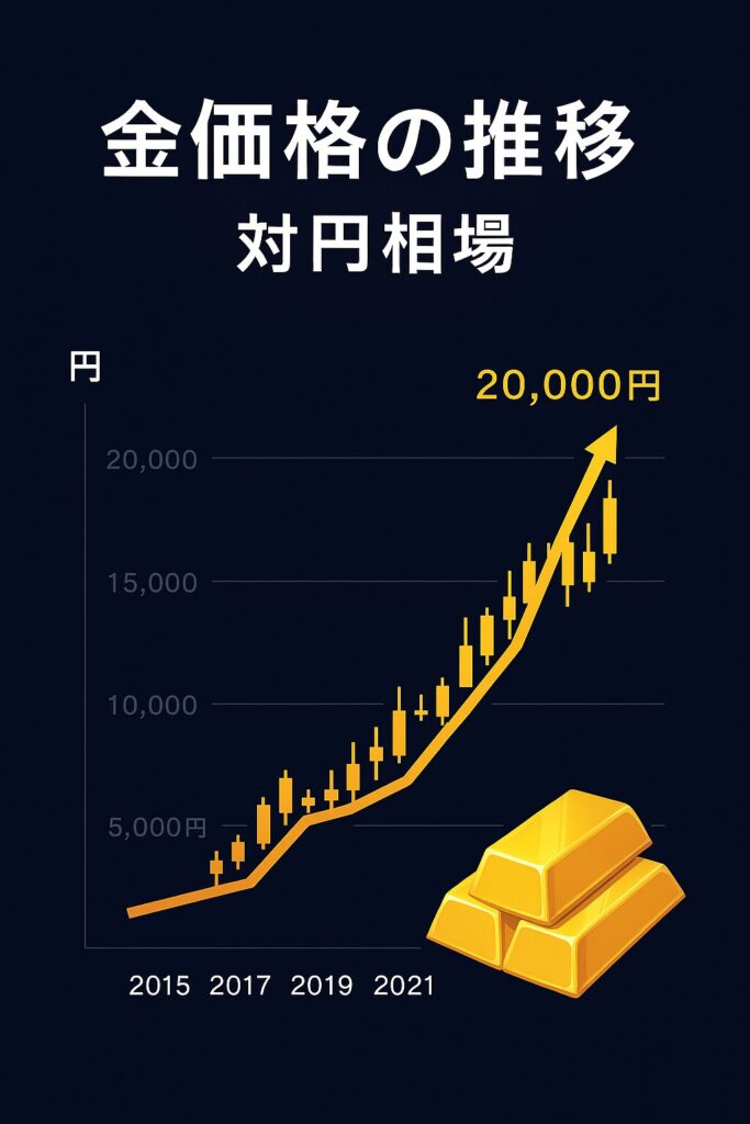 「金価格 日本」「円安 金価格」「金価格 推移」といったキーワードが示すように、金は今や単なる「有事の資産」ではなく、長期的な資産形成の柱として再評価されているのです。