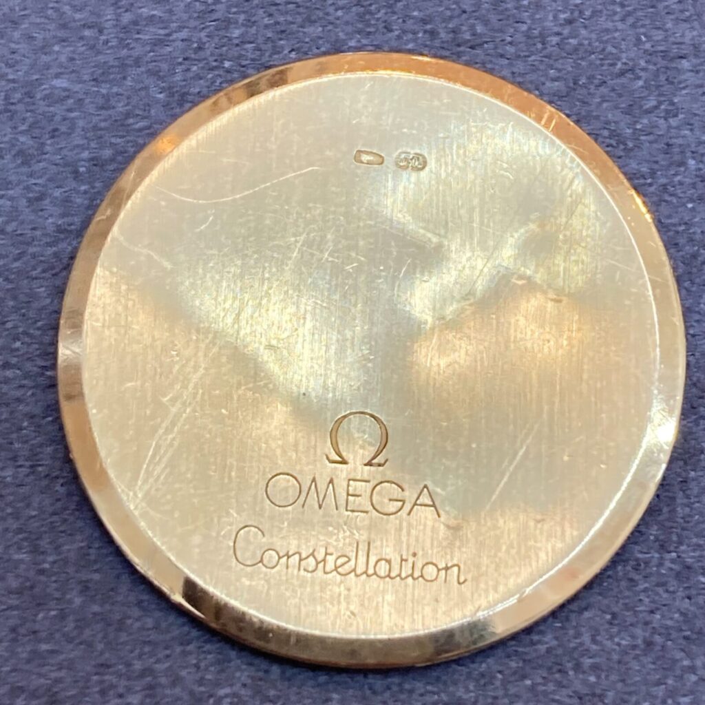 写真(IMG_E1074.JPG)をご覧いただくとわかる通り、このモデルの裏蓋には「OMEGA Constellation」の文字が誇り高く刻印されています。コンステレーションの中には天文台のレリーフが施されたものもありますが、こちらのRef.396.1080は、金無垢の美しい質感を最大限に活かした、フラットで洗練された仕上がりが特徴です。シンプルだからこそ、18金特有の深い輝きが際立ちます。
