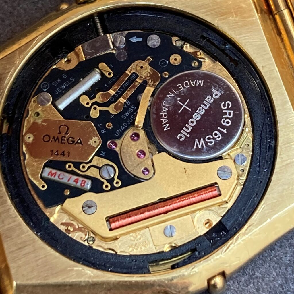 当店では外観だけでなく、内部のムーブメントまでしっかりと拝見いたします。今回の個体はオメガ純正のクォーツムーブメント「Cal. 1441」(IMG_E1076.JPG)を搭載しており、時計としての真贋・価値もしっかりと評価させていただきました。