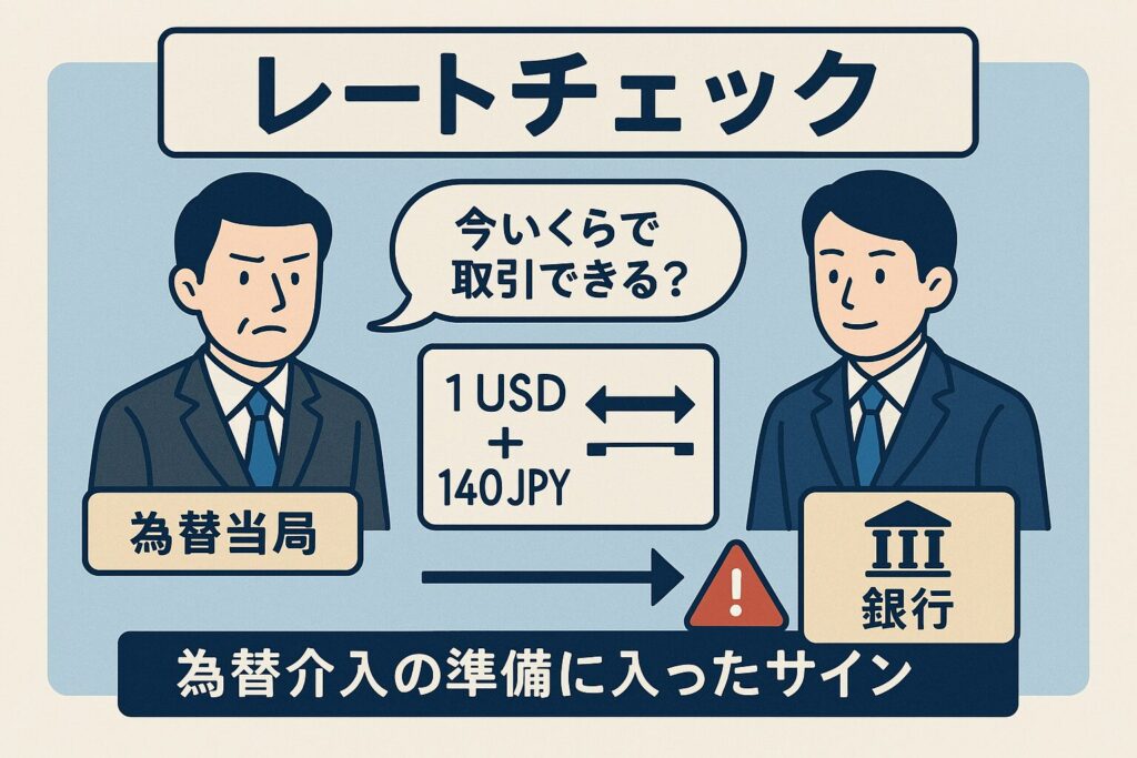 最近のニュースやSNSで「レートチェック」という言葉をよく見かけるようになりました。 特に2025年に入ってからは、ドル円相場が急激に動くタイミングで必ずと言っていいほど登場し、市場参加者だけでなく一般の方からも「レートチェックって何?」という声が増えています。