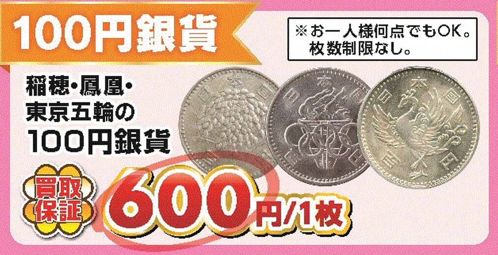 昔の100円銀貨は銀相場の影響で人気が高いジャンルです。