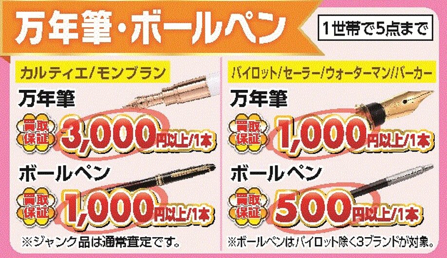 ✒️ 4. 高級筆記具(カルティエ/モンブラン/パイロット等)
