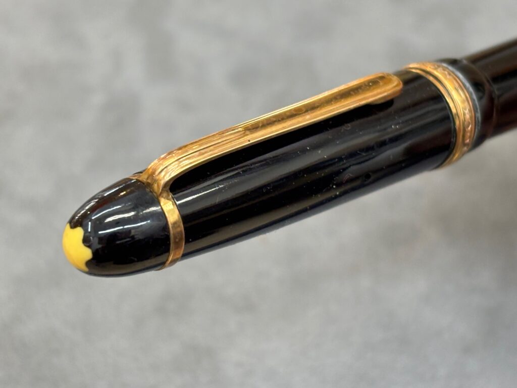 また、モンブランならではのブラックレジンボディとゴールドトリムの組み合わせは、クラシックでありながら重厚感のあるデザイン。 未使用品でありながら、保管時の影響による若干の変色が見られましたが、ペン先の状態や全体の美観から高評価につながりました。
