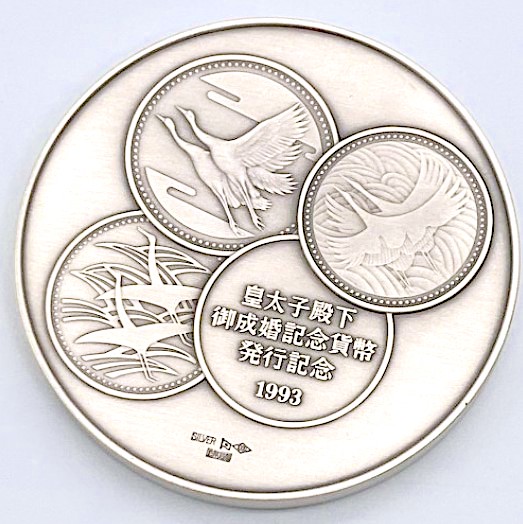 皇太子殿下御成婚記念貨幣発行記念メダルは、1993年(平成5年)当時の皇太子殿下(現在の天皇陛下)と雅子さまのご成婚を祝して発行された記念メダルです。