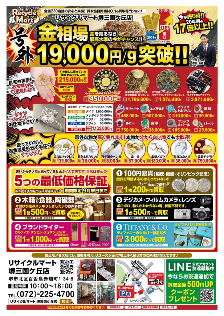 【チラシキャンペーンのご案内】1g 19,000円超え!金売るなら今がチャンス