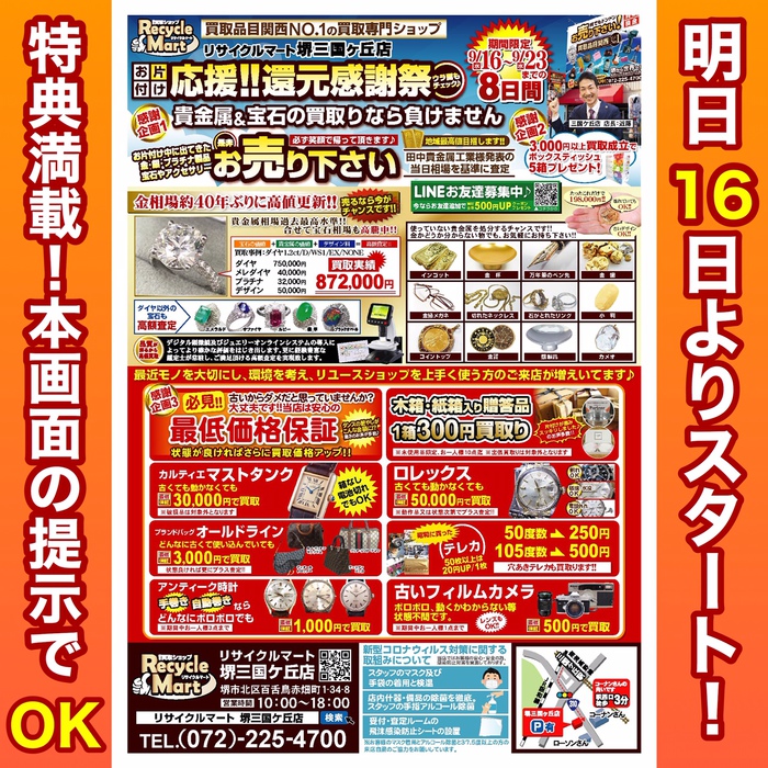 【チラシキャンペーンスタート!】16日(水)からお片付け応援!還元感謝祭開催! 貴金属・宝石の買取なら負けません!!