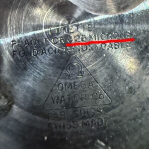 裏蓋にメッキ製表記の「G20 microns」刻印があります。