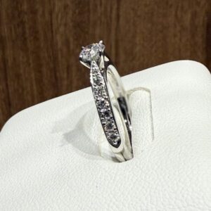お持ちいただいたダイヤモンド付プラチナ製のリングは石の大きさは小さめでしたが、カラット・カラー・クラリティ・カットいずれも高評価でしたので、精一杯の買取金額をご提示させていただきました。