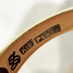 リングの内側、チェーン留め具部分、イヤリングの側面などに品位の刻印があります。
