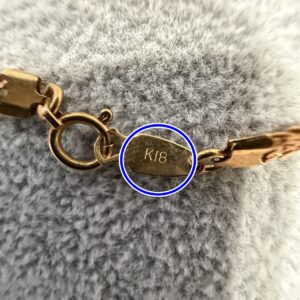 18金製のネックレスの留め具部分に「K18」刻印がありました。