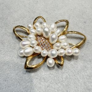 こちらの18金製ブローチのダイヤモンド、パールにもお値段をつけさせていただきました♪