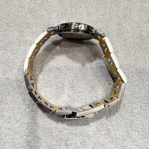 買取時の査定ポイントとしては、ケースやベゼルのキズ、ブレスのたるみ、箱、ギャランティカード、コマ等付属品の有無などを見ていきます。