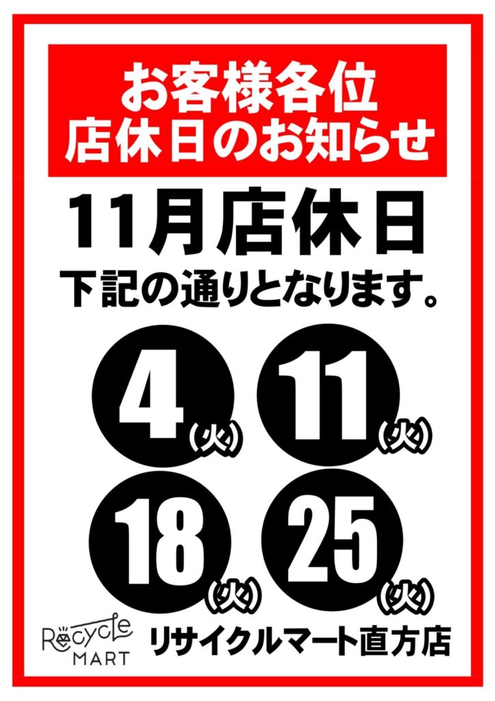 2025年11月の店休日のご案内です。