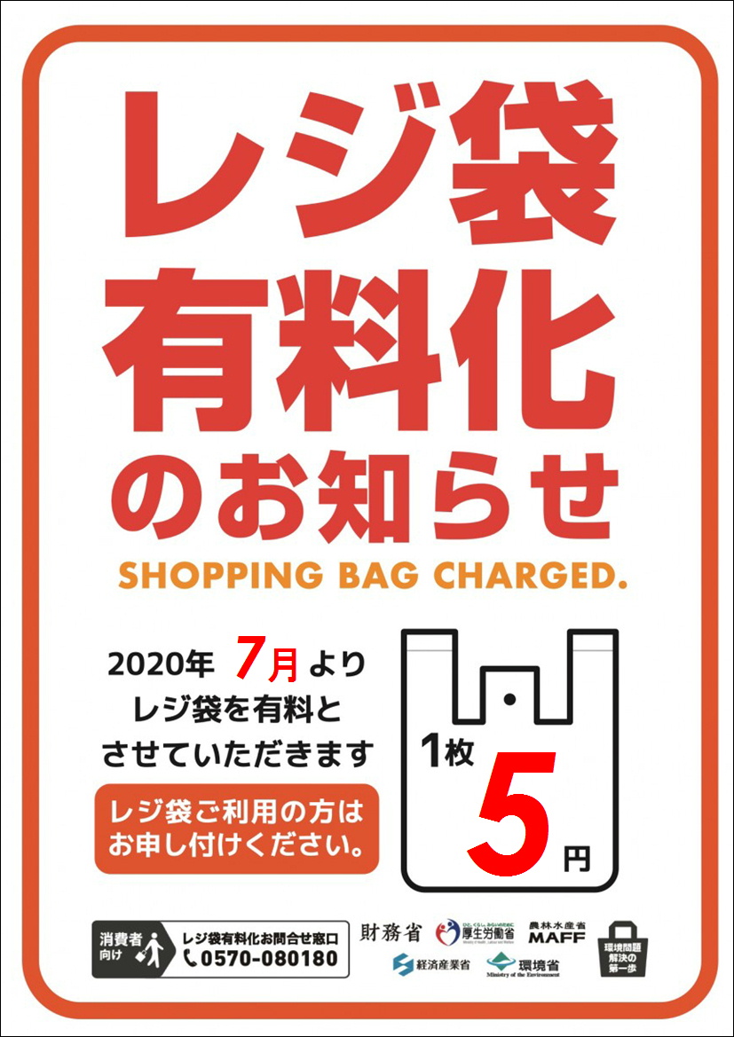 このような状況を踏まえ、令和2年7月1日より、全国でレジ袋の有料化を行うこととなりました。