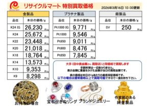 2026年3月16日 金 貴金属 買取価格 静岡市 静岡駅