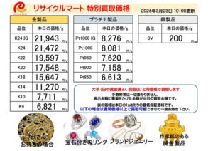 2026年3月23日 金 貴金属 買取価格 静岡市 静岡駅