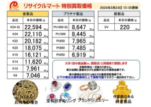 2026年3月24日 金 貴金属 買取価格 静岡市 静岡駅