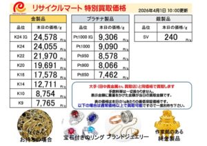 2026年4月1日 金 貴金属 買取価格 静岡市 静岡駅