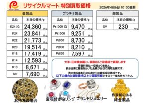 2026年4月6日 金 貴金属買取価格 静岡市 静岡駅