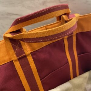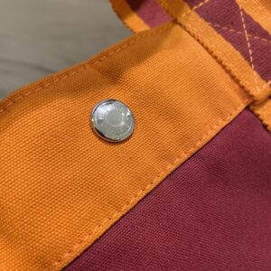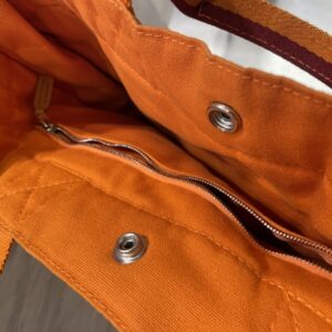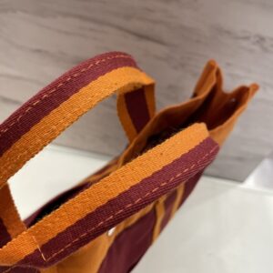 ●色の「重なり」の深さ:通常モデルは2色程度の糸で織り込まれていますが、この限定モデルはオレンジ、バーガンディ、そして微妙にトーンの違う中間色の糸が非常に密に織り込まれています。これにより、光の当たり方で表情が変わり、単なるカジュアルバッグではない「高級感」を演出しています。