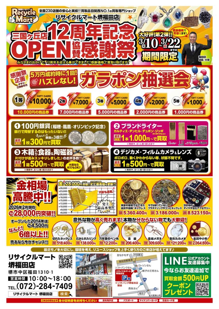【チラシご案内】三国ヶ丘店との合同企画「12周年記念協賛 感謝祭」4月19日まで!