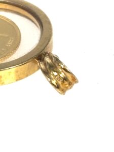 コイントップはコイン(金貨)に枠を付けてチェーンを通せるようにしたもでコインと枠で違う金の純度を使用している場合が多いです。
