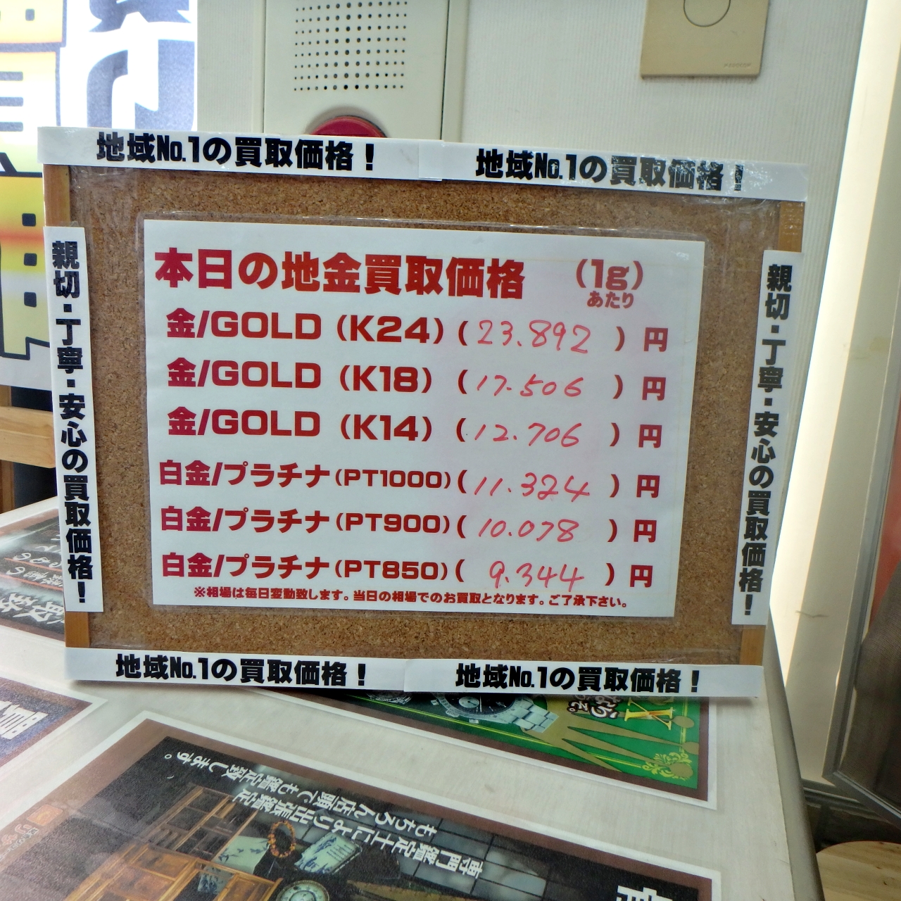 当店では、「 1点から無料査定」、「その日の相場に基づく明朗価格」、「その場で現金買取対応」など、貴金属買取で地域一番店を目指しています。