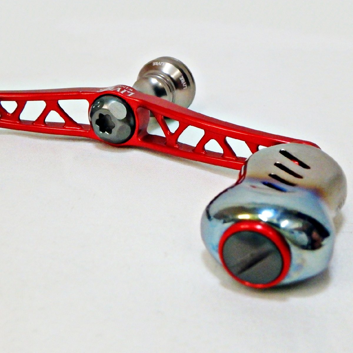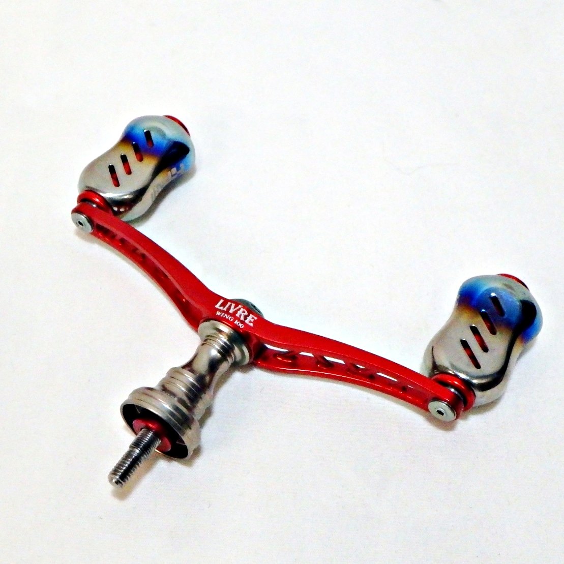 LIVREのWING100は、超軽量かつ機械切削による高精度なWハンドルとして知られるモデルで、finoノブとの組合せは軽快な巻き心地を求めるユーザーから高い評価を受けています。