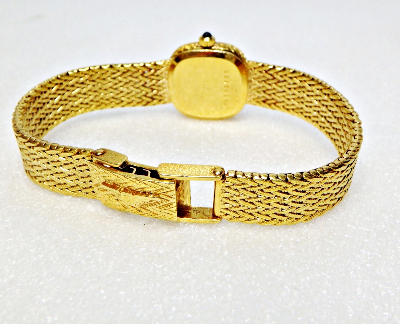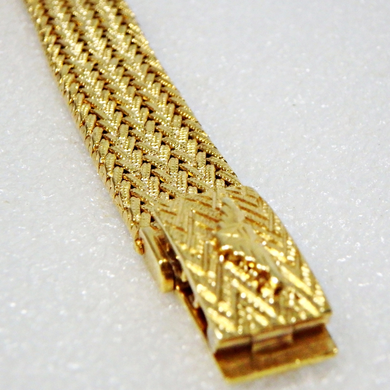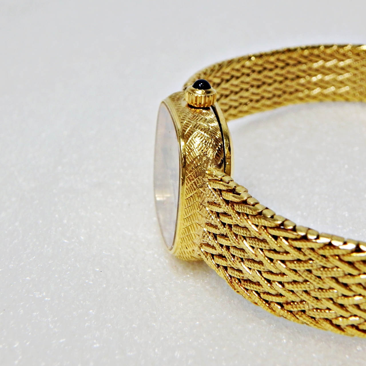 小ぶりなケースに編み込みのブレスレットが組み合わされた一本で、いわゆる装飾性の高いゴールドウォッチ。