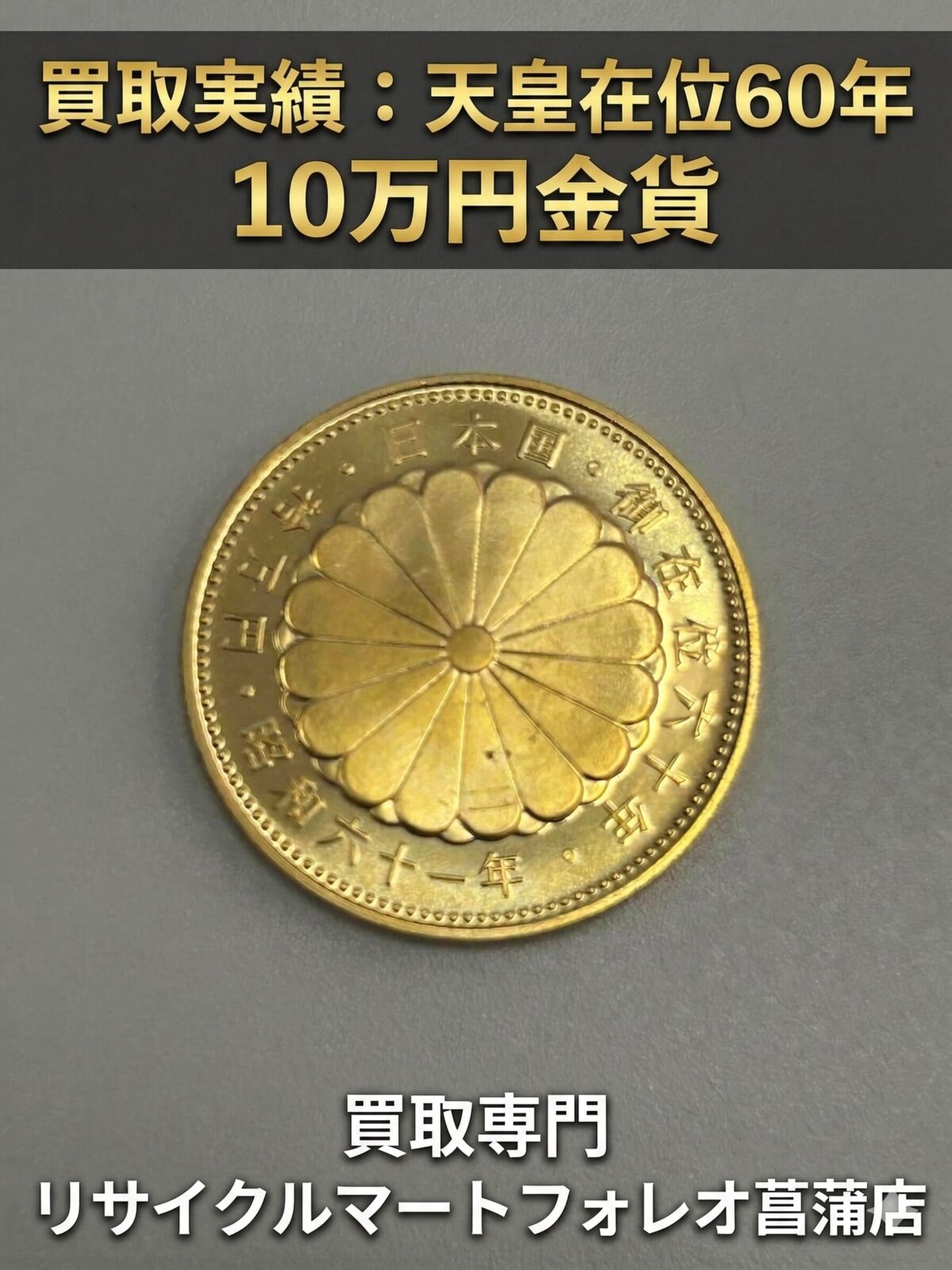 日付 2026/03/04造幣局名称 天皇陛下御在位60年記念 10万円金貨買取価格430,000 円 -