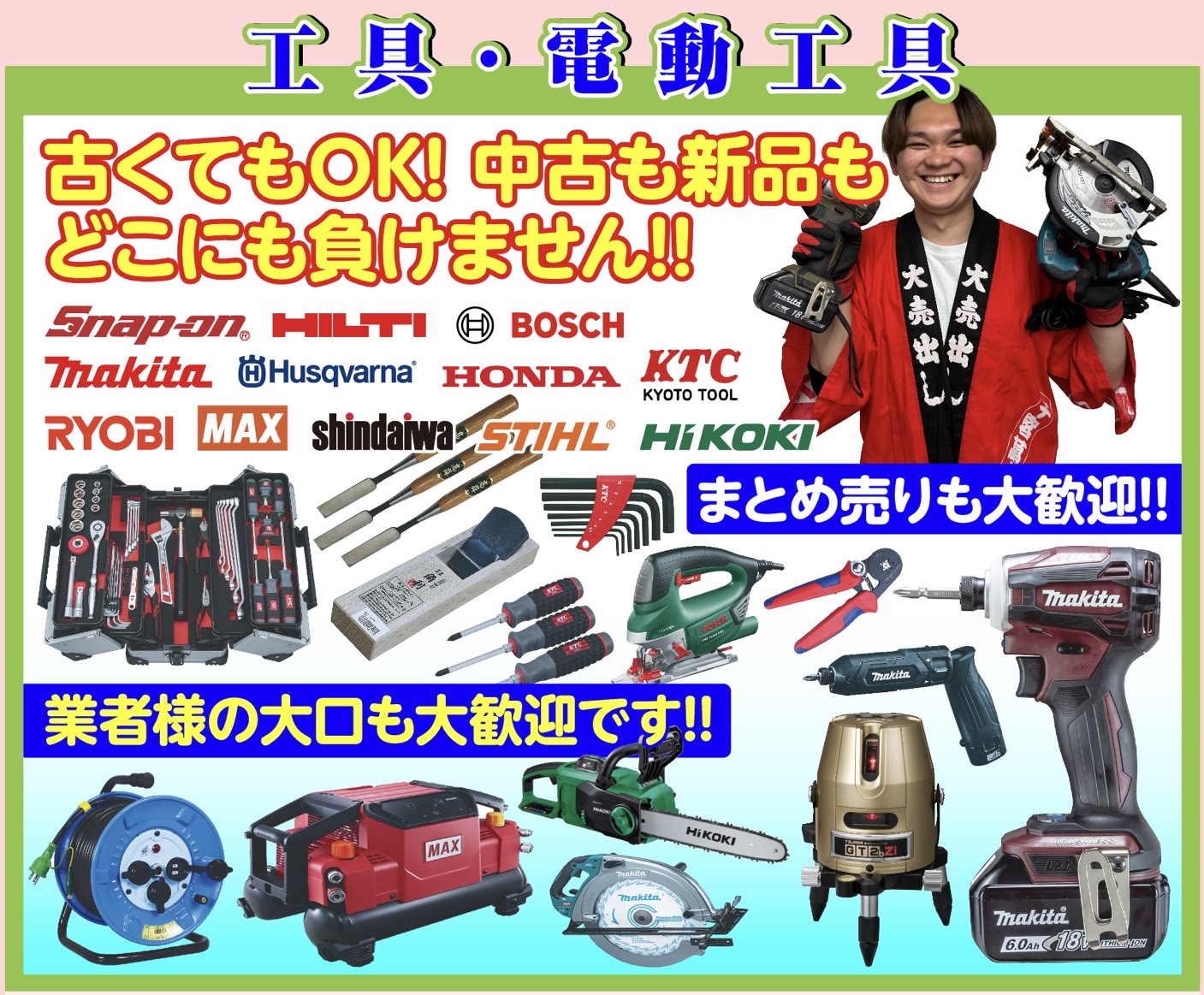 古くてもOK!中古も新品も、あなたの工具を最高額で買い取ります!